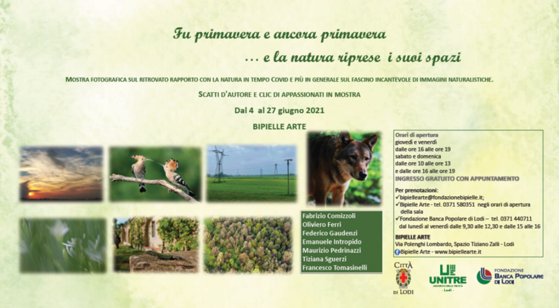 L'esposizione, che sarà visitabile solo con appuntamento fino al 27 giugno 2021, vuole documentare come la natura (al contrario degli umani) abbia rispettato i suoi ritmi anche in epoca Covid, riprendendosi spazi lasciati liberi da un processo interrotto di avanzamento continuo di “civiltà”, quasi una sfida, una sorta di riappropriazione di qualcosa che c’era e che non c’è più, che potrebbe però tornare ad esserci.A fotografie di grande livello artistico e simbolico, si accompagnano, in sezioni apposite, anche immagini immortalate da molte persone “comuni” che, appassionate di fotografia (o appassionatesi alla fotografia) e limitate nella vita ordinaria dalle restrizioni imposte dalla pandemia, hanno riscoperto un rapporto più diretto con l’ambiente naturale, riuscendo nel contempo a catturare una muta testimonianza della bellezza della natura.