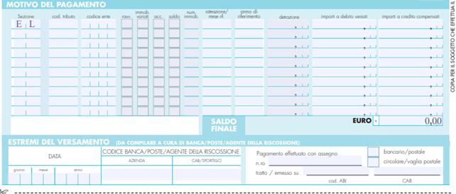 Nel caso il versamento dovesse interessare più codici tributo, compilare ogni riga per ogni codice tributo da versare