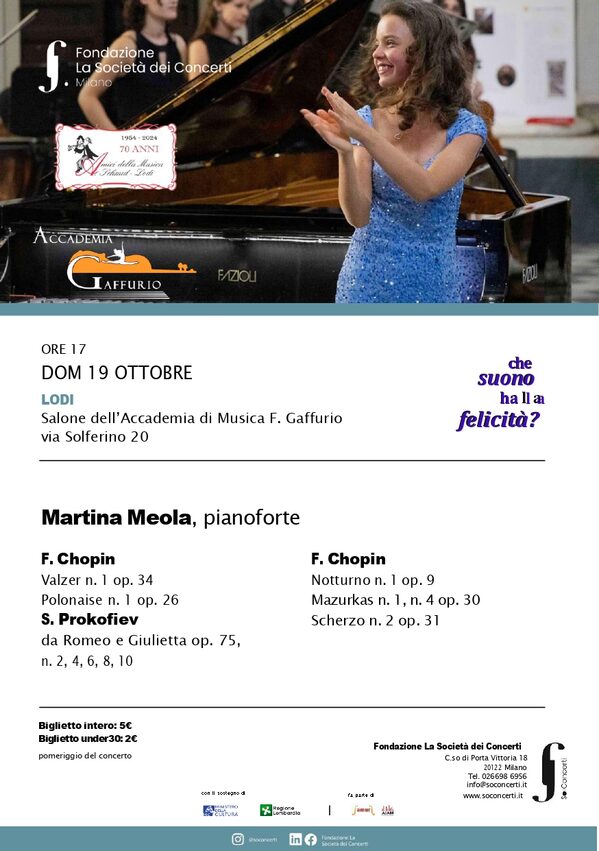 MobilitàBen dieci concerti di alto livello, a cadenza mensile da settembre 2025 a giugno 2026, dedicati al repertorio classico noto e meno noto, eseguito da interpreti rinomati e offerti al pubblico a prezzo simbolico grazie alla sinergia con l'Associazione "Amici della Musica A. Schmid" di Lodi e ad alcuni tra i più prestigiosi enti concertistici milanesi, accreditati a livello internazionale, quali "Serate Musicali", Società dei Concerti", "Pianofriends" e "Rogoredo Musica". Novità di quest'anno: il pianoforte solista è molto presente ma compaiono diverse formazioni di musica da camera, per una proposta sempre più ricca e diversificata.