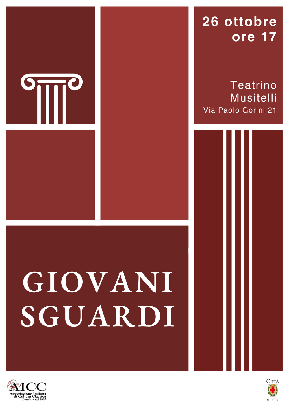 Torna la rassegna "Giovani Sguardi", organizzata dall'AICC - Delegazione di Lodi per conoscere il lavoro e il percorso di neolaureati in discipline umanistiche e per avvicinarsi al mondo classico attraverso nuovi sguardi. Il 26 ottobre alle ore 17:00 due giovani studiosi presenteranno il loro lavoro di ricerca in Letteratura greca e Filosofia.