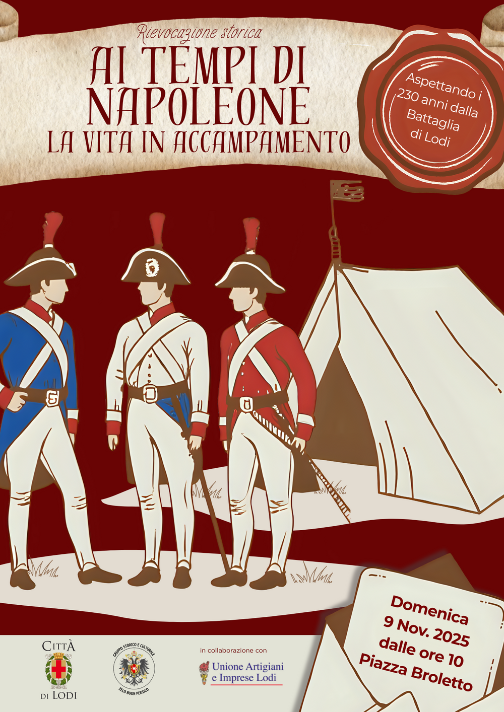 Soldati semplici, ufficiali, artiglieri, tamburini e vivandiere popoleranno per l'intera giornata il centro città, ricreando un'atmosfera da accampamento militare di fine Settecento.