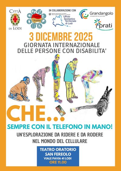- Ore 11.00: presso il Teatro dell'oratorio della Chiesa di San Fereolo, viale Pavia 41, la compagnia teatrale "I Prati" terrà lo spettacolo "Che....sempre con il telefonino in mano!" Spettacolo offerto dal Comune di Lodi alle scuole secondarie di secondo grado di Lodi e agli SFA, in collaborazione con la Consulta disabilità del Comune di Lodi che rappresenta tutte le associazioni aderenti.