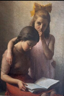 pastello preparatorio al celebre “ libro azzurro”, passando per Giovanni Maria Mossa e Vito Vaccaro, e per l'opera di Noel Quintavalle tra ricordi divisionisti e novecentisti. Poi Renato Fasoli, Angelo Galbiati, Aurelio Craffonara, Giotto Sacchetti e Angelo Cantù, l'intimismo di Angelo Monico, la scena di genere di Osvaldo Bignami e la scultura di Ettore Archinti. Unica donna del gruppo, Alina Marley che si dipinge nell'atto del leggere, considerato dalla mostra anche con riferimento a giornali, lettere, e spartiti musicali.