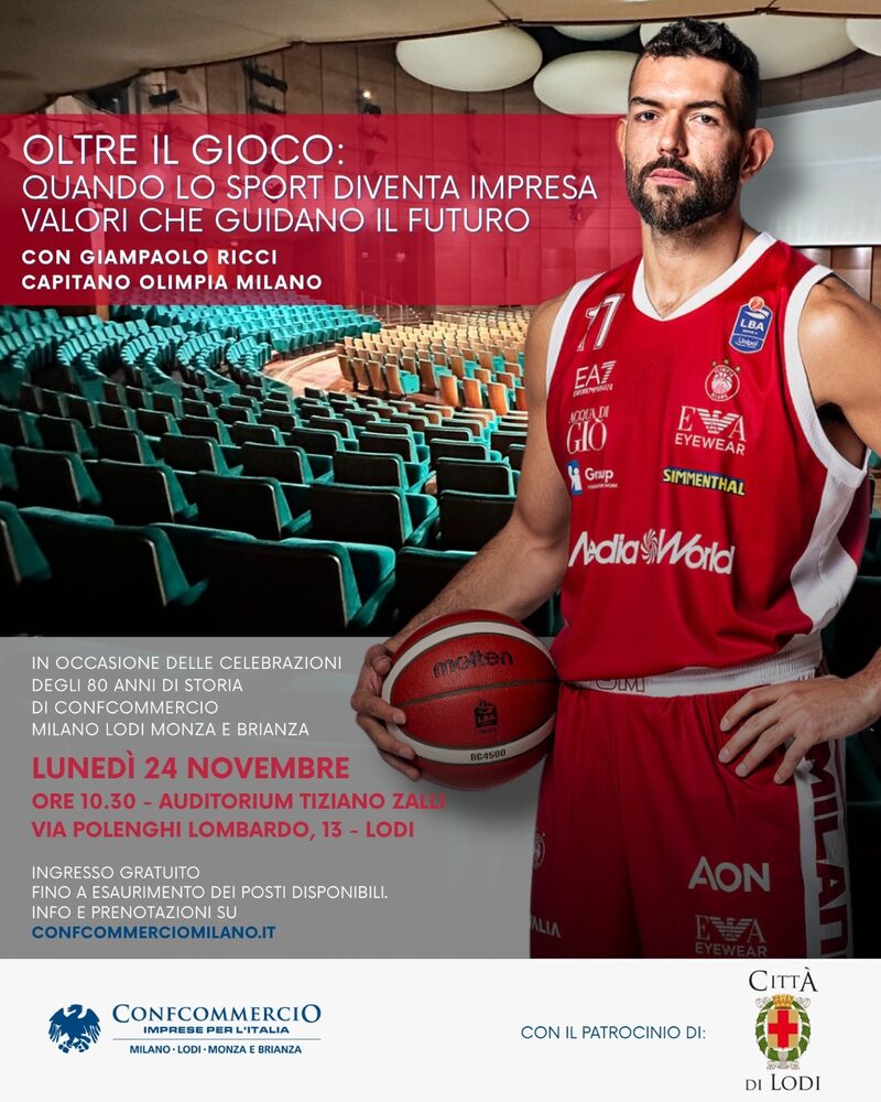 🏀 Ospite speciale Giampaolo Ricci, capitano dell’Olimpia Milano, che porterà la sua testimonianza di sport, impegno sociale e responsabilità verso la comunità: un esempio di come lo sport possa diventare una vera “impresa” di valori.