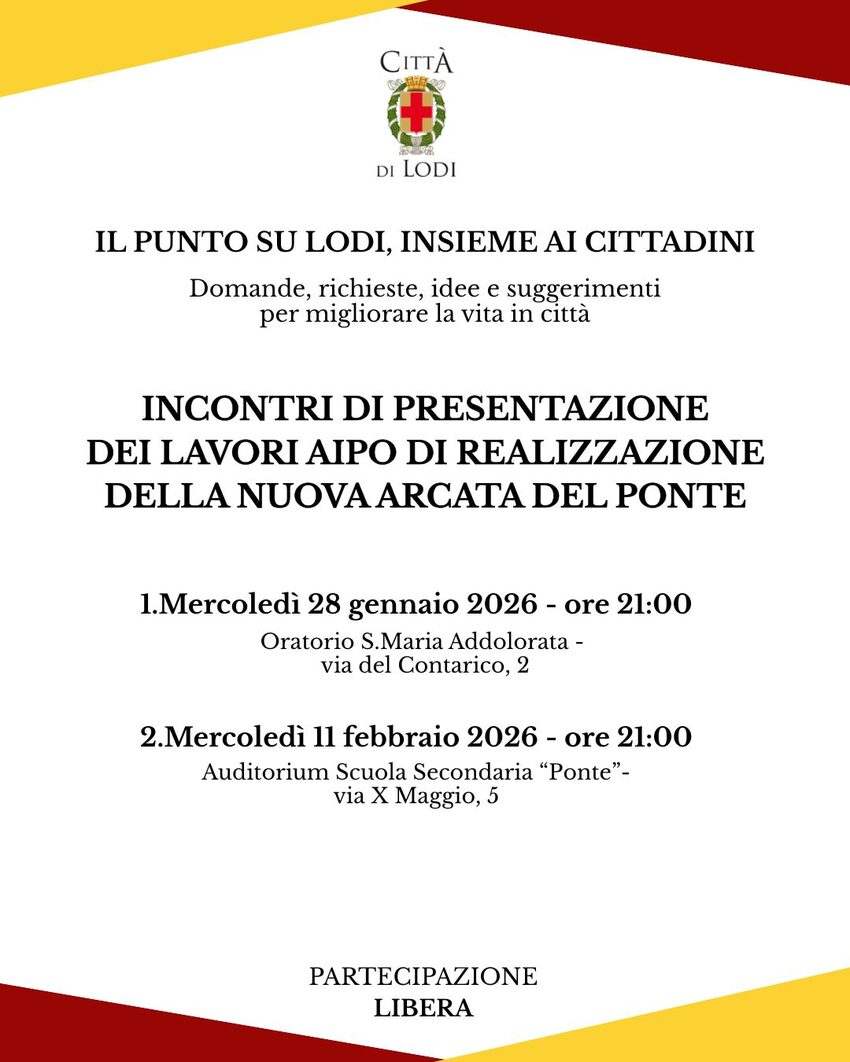 Il focus principale di questi appuntamenti sarà la presentazione dei lavori AIPO per la realizzazione della nuova arcata del ponte, un intervento infrastrutturale di grande rilievo per la città.