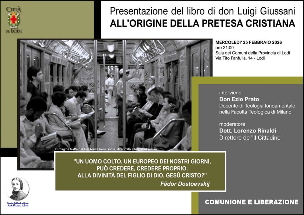 Tutto questo, e molto di più, verrà affrontato mercoledì 25 febbraio, alle ore 21, durante la presentazione del libro All'origine della pretesa cristiana di Don Luigi Giussani, presso la Sala dei Comuni della Provincia di Lodi.