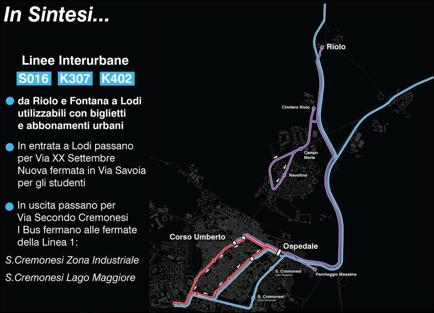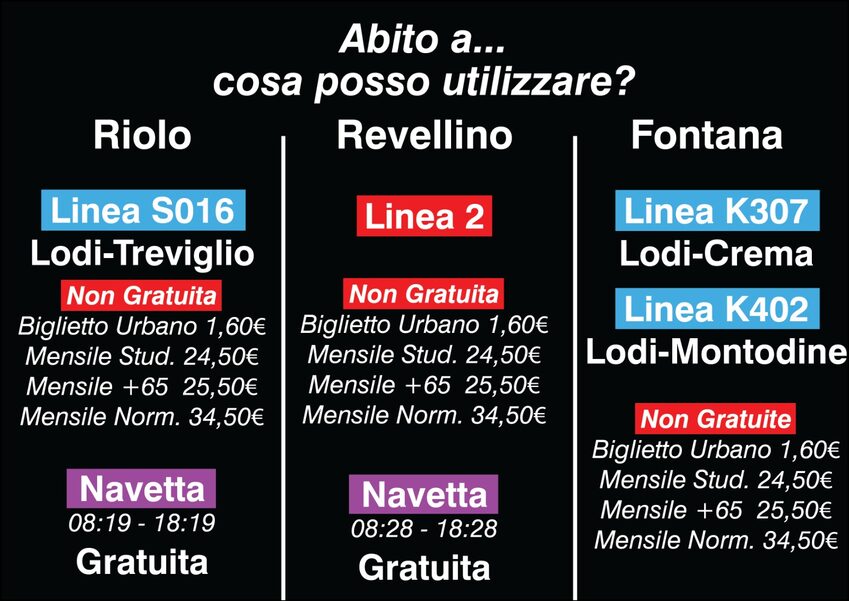 Per gli spostamenti tra Riolo / Fontana e Lodi è