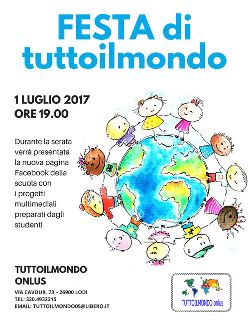MobilitàIl Comune di Lodi promuove Festa di tutto il mondo, un'iniziativa di Tutto il mondo Onlus che si tiene il giorno sabato 1 luglio alle ore 19.00 presso la sede di via Cavour 73.