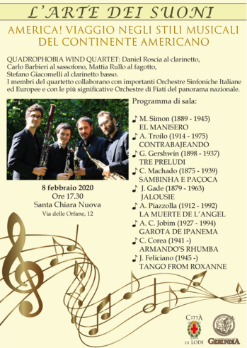 Sabato 8 Febbraio alle ore 17.30 presso Santa Chiara Nuova "AMERICA! Viaggio negli stili musicali del continente americano".
